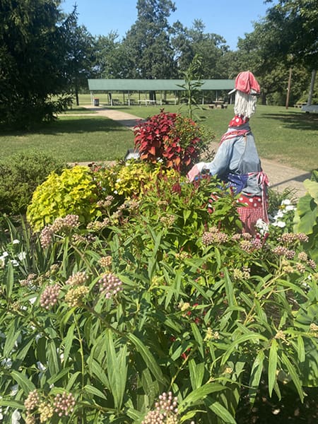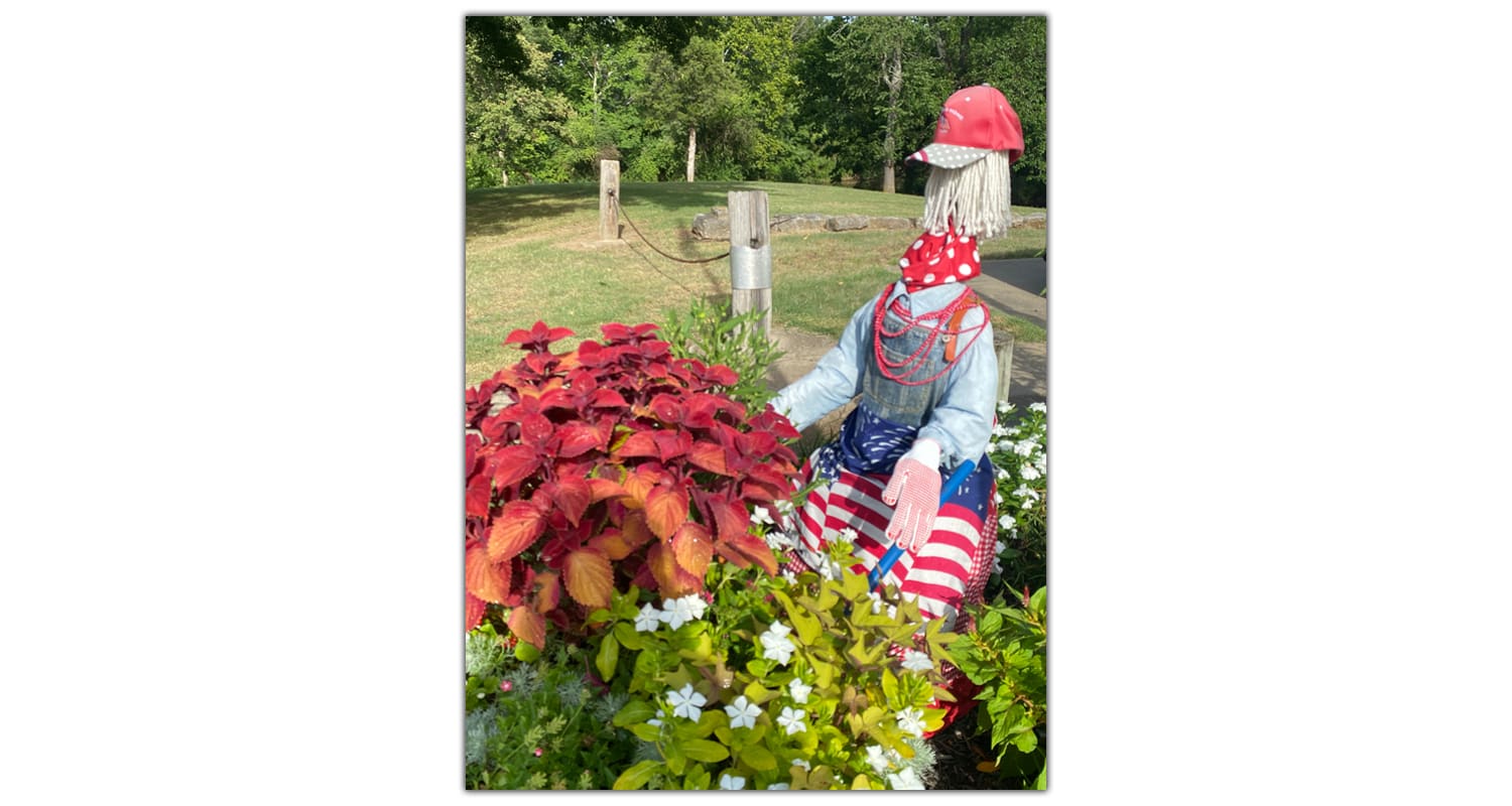 Maggie has become the garden’s most recognizable and beloved feature. She didn’t begin as the fully adorned figure she is today—in fact, she started with just a mop for a head. But like the garden around her, she has blossomed over the years. Now, she gets a wardrobe change every season, dressed in creative, festive outfits that reflect the time of year and bring delight to visitors young and old.