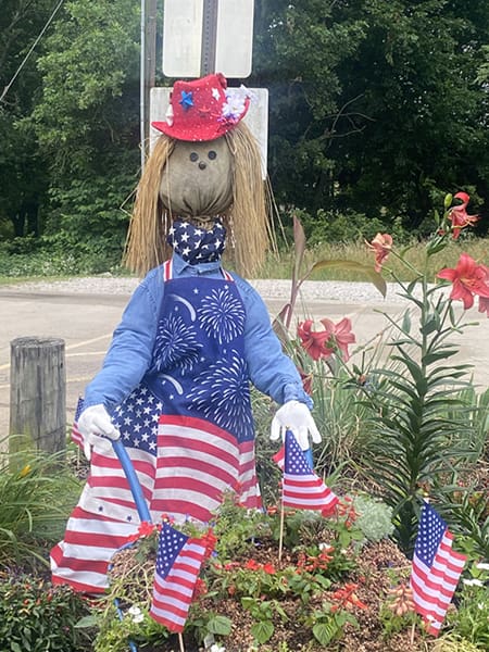 In the heart of Elkins, Arkansas, nestled among blooms and butterflies, stands a beloved figure who has become the soul of our Veterans Garden. Her name is Margret America, “Maggie” for short. Margret America was my fifth great-grandmother’s name and we found it a fitting name for our garden lady in the Veterans Garden.